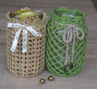 Una forma de darles nueva vida a todos esos frascos de conservas que compramos es decorarlos con ganchillo. Se pueden reutilizar para guardar infinidad de cosas o bien para regalar. Que bonito detalle para Navidad lleno de bombones o caramelos. Podéis poner botones o decorar vuestro hogar poniendo velas dentro.