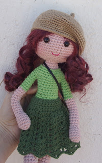Una nueva muñeca pelirroja con boina y bolsito a juego, que os parece?