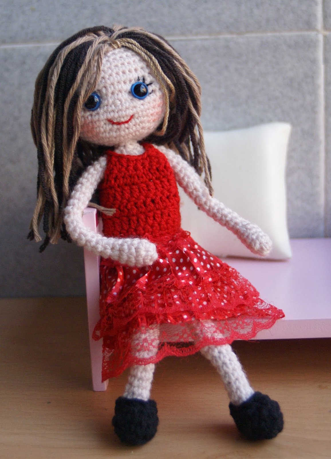 y una linda muñeca rubia tejida por Lilian siguiendo uno de mis patrones.